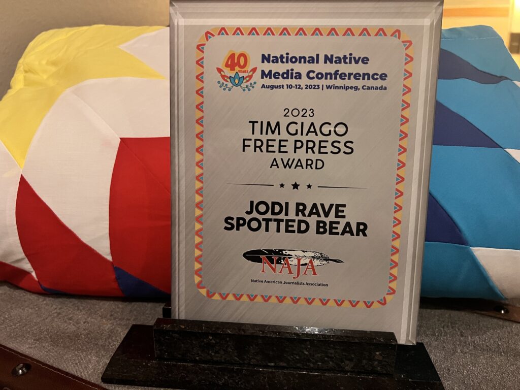 I was honored to receive the inaugural Tim Giago Free Press Award on Saturday, Aug. 12, during the 40th Annual National Native Media Conference in Winnipeg, Manitoba. It’s visionary leaders like Tim who inspire people like myself to do more for the well-being of our communities through journalism.