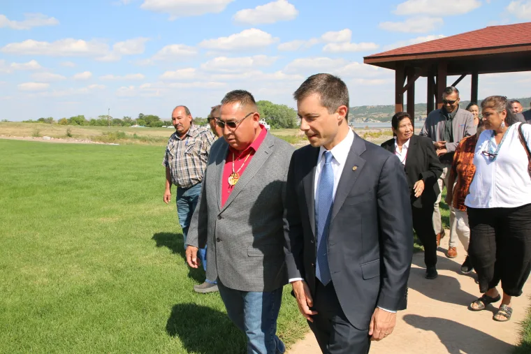 Buttigieg visited South Dakota tribes Monday to discuss the Bipartisan Infrastructure Bill, which aims to provide $431.6 billion in grants for states, tribes, and utilities to rebuild roads, bridges and rails, and expand access to clean drinking water and access to high-speed internet.