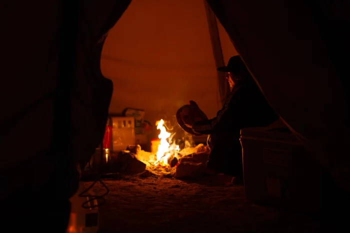 “I choose to stand out here and fight against this desecration of our ancestral burial grounds,” she said. “I’m not going to see the effects of what’s to come. The elders aren’t going to see the effects of it. My children might, but their children will. And that’s why I choose to stand out here. So those generations can have clean air and clean water to drink and Mother Earth to walk on.”