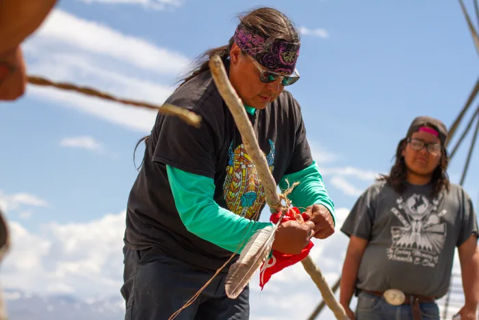In May, Elders watched closely and taught young men how to build the tipi, which was used for prayer and ceremony. Obsidian glittered as lizards scurried among the sagebrush. Careful hands placed each weathered pole, while the songs of the Western meadowlark echoed across the valley. One elder cracked jokes in Paiute and they all burst into laughter.