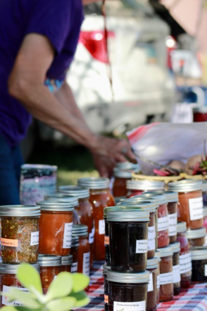 Waldock began the market about 10 years ago. “I don’t want food to go to waste and this was one way to use up the extras,” she said. Her home garden is almost twice the size of a basketball court, allowing her to harvest enough to feed her family, preserve food, and then sell fresh vegetables and prepared goods from the excess.