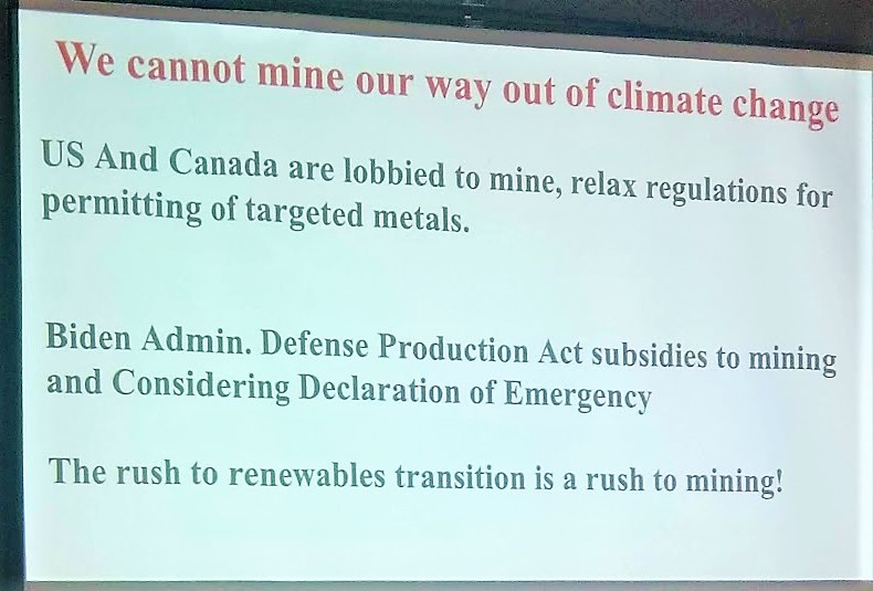 “We can’t mine our way out of a climate crisis. That’s our slogan,” says Reno-Sparks Indian Colony Tribal Historic Preservation Officer Michon Eben. “You cannot have a massive mine like this and think that is going to be good for the earth because it’s not. The lies that are being told about electric vehicles are not appropriate.”
