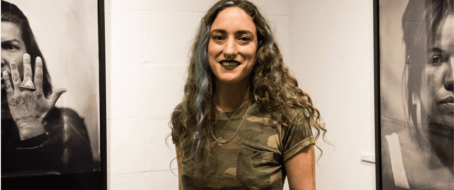 KS: Yeah, I do think it comes across, and I think it comes across in the strength and vulnerability in people’s faces. People are looking proud and comfortable; I often just photograph people when they’re looking straight at me, so there is that connection — when someone is in a space filled with these portraits and people are all looking at you. So I do think that comes across, and there’s also audio components that go along with these images that the person in the image has a choice to contribute or not. And there’s no editing of audio and no restrictions. If someone wants guidelines, I will give that to them, but it’s so much about being heard and seen. I think that Indigenous women, trans, non-binary people as well as people of color, the black and brown and queer community, that we are often not seen or heard. And there’s so much violence committed against our communities, so part of my idea, part of my hope, is that by making beautiful, intense, loving images that are so large, where the person is looking right at you and you’re also encouraged to listen to their story of what they want to share with you, I’m hoping to make a deep, human connection — where maybe if somebody walks into that gallery that had a prejudice before, maybe they’d leave more educated, or feeling connected to a person that they wouldn’t usually connect to.