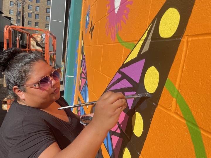 Different generations helped with each handprint on the mural throughout its five-day creation. Melanie Moniz, one of the organizers, said dragonflies and the butterflies in many tribal nations represent messengers and protectors.