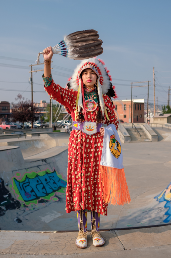 MOUNTAIN TIME ARTS (MTA) is commissioning a new temporal public art project by photographer Adam Sings In The Timber for the opening of Story Mill Community Park. This project is part of Mr. Sings In The Timber’s “Indigenizing Colonized Spaces” series. In this series, the artist constructs stunning color portraits of Indigenous women wearing traditional regalia in urban cities within the United States. Sings In The Timber photographs women who are descended from tribes that originally lived in specific regions. For this upcoming work, Sings In The Timber is creating five portraits with an intertribal group of five women who reside in the Gallatin Valley, using familiar Bozeman landmarks as his backdrops. The featured women are community leaders, artists, activists, and students, and include: Florence Doyle (Apsaalooke), Alisha Nicole Fisher (Tsitsistas and Apsaalooke), Shakira Glenn (Apsaalooke), Jaya King (Amskapi Pikuni) and Francesca Pine Rodriguez (Apsaalooke and Tsitsistas).