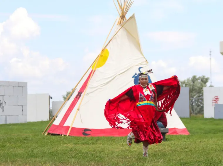 Lynn Running Wolf, a citizen of the Cheyenne River Sioux Tribe, has been bringing her kids to RedCan to dance for over five years. Running Wolf’s son, Aldon One Feather, has been a grass dancer since he could walk. One Feather said he likes dancing because it’s just fun.