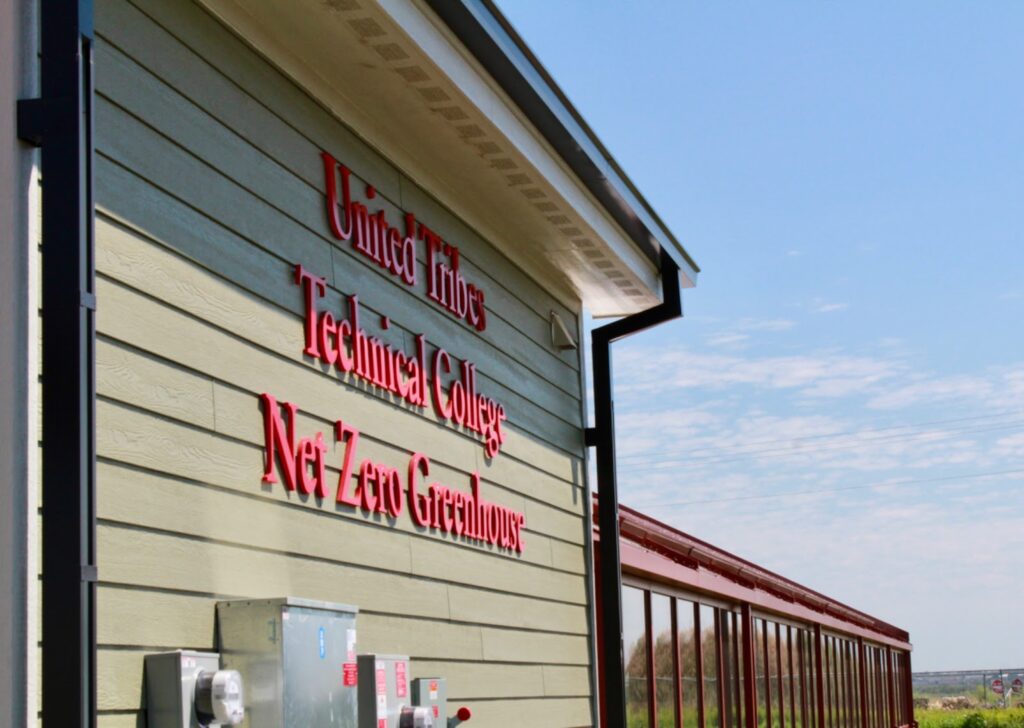 The UTTC net-zero greenhouse was funded in part by the Native American Agriculture Fund, an organization with deep local history; the fund was established via a lawsuit centered on ranchers from the Standing Rock Indian Reservation.