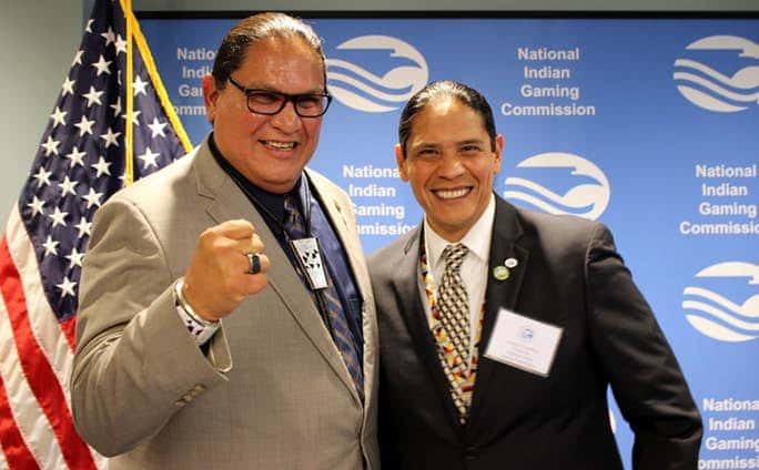 National Indian Gaming Association Chairman, Ernest Stevens, Jr., and Jonodev Osceola Chaudhuri, the NIGC Chairman share remarks at the 30 year IGRA commemoration event. Photo: Vincent Schilling