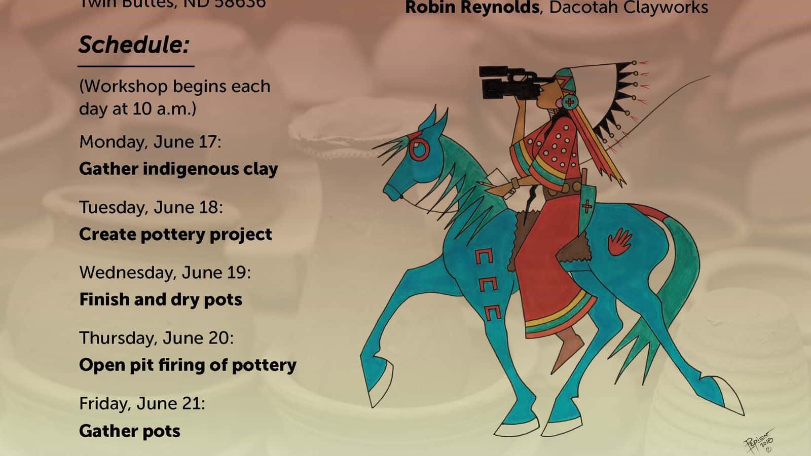 Wade Haakenson demonstrates how to make pottery in the tradition of the Mandan and Hidatsa. Pottery workshop scheduled in Buttes, which is hosted by the Indigenous Media Freedom Alliance and sponsored by the North Dakota Council on the Arts.