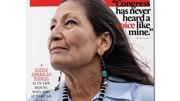 In tandem with a feature-length story by Newsweek correspondent Rebecca Nelson titled Native American Women Made History in the Midterms. Here's Why It Took So Long, Laguna Pueblo Congresswoman-elect Deb Haaland appears on this week’s cover of Newsweek magazine.